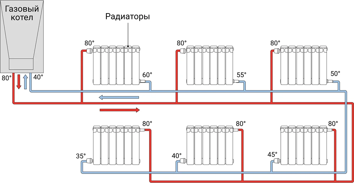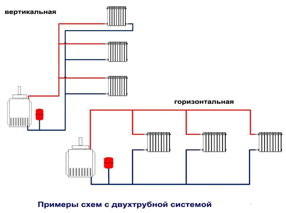 Читать статьюСхема двухтрубной системы отопления в частном доме