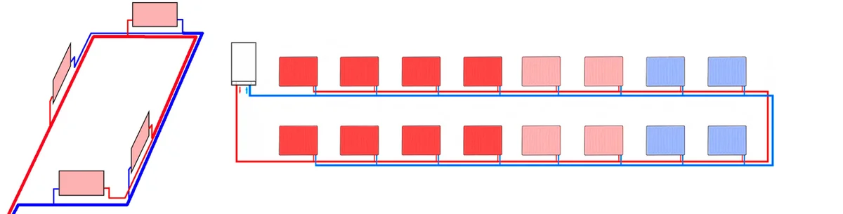 Двухтрубная разводка — универсальное решение, которое одинаково хорошо работает как в компактном коттедже, так и в трехэтажном особняке. Она совместима с теплыми полами, бойлерами косвенного нагрева, солнечными коллекторами и тепловыми насосами. Более того, такая разводка является стандартом для всех современных настенных газовых котлов, которые рассчитаны на работу с низкими температурами.