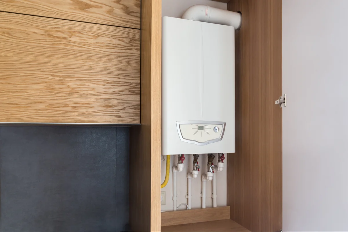 Если мощность газового котла не превышает 50 кВт, допускается размещать его на кухне. Но ее объем должен быть не менее 15 м³ для отопительного оборудования с закрытой камерой сгорания и не менее 21 м³ — с открытой.