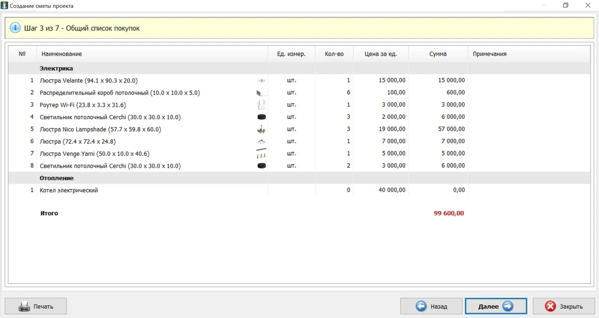 Читать статьюВ программе есть несколько режимов для работы с проводкой: «Розетки», «Освещение», «Выключатели», «Электропроводка». Также, она поддерживает создание смет в полуавтоматическом режиме: материалы подгружаются вручную, нужно лишь отредактировать цены.