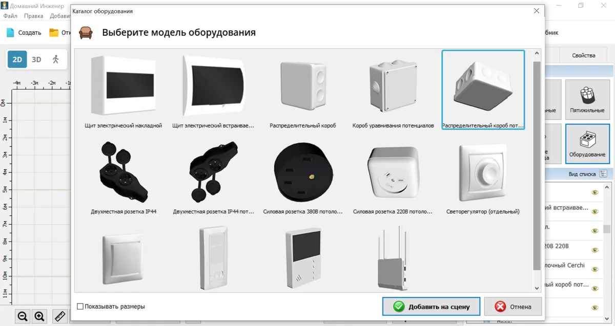 - Выберите кабели, автоматы, УЗО, и другое оборудование.