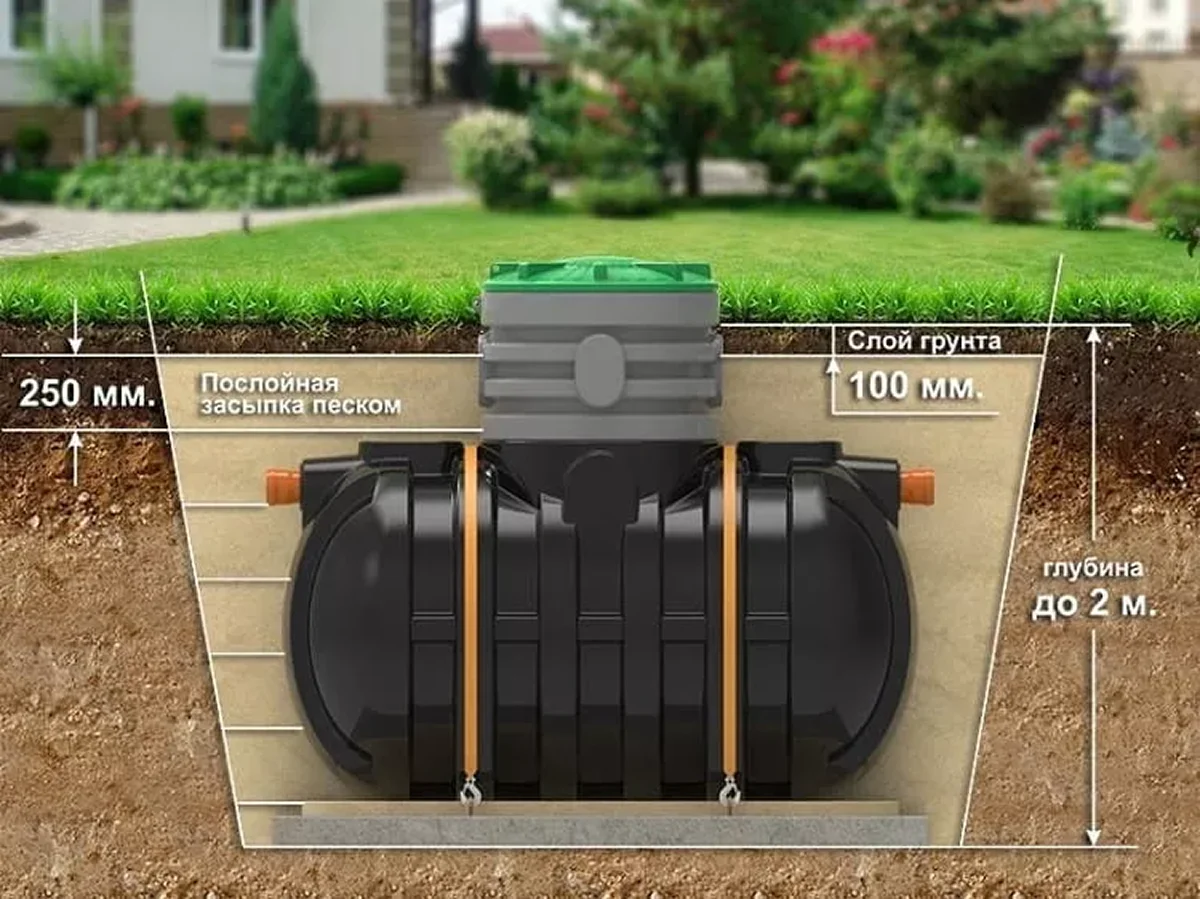 Накопительные емкости герметичны и просто собирают все жидкие бытовые отходы. Как и их устаревший аналог – выгребные ямы, полностью лишены функции очистки стоков. Требуют регулярной откачки – каждые 1–3 месяца в зависимости от объема и количества пользователей. Устанавливаются при высоком уровне грунтовых вод или в скальных грунтах, где невозможно организовать дренажную систему.