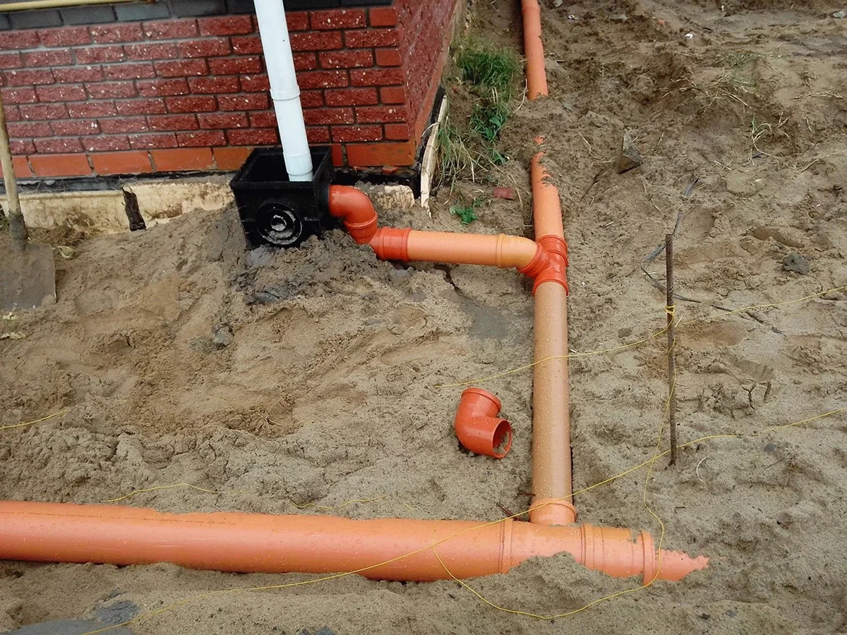Выройте наружную траншею для прокладки канализационных трубопроводов с уклоном от дома – минимум 1 см на метр. Выровняйте дно, насыпьте слой песка толщиной 10–15 см. Уложите трубу, проверив отсутствие провисаний, и загерметизируйте соединения.