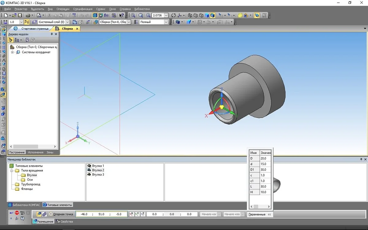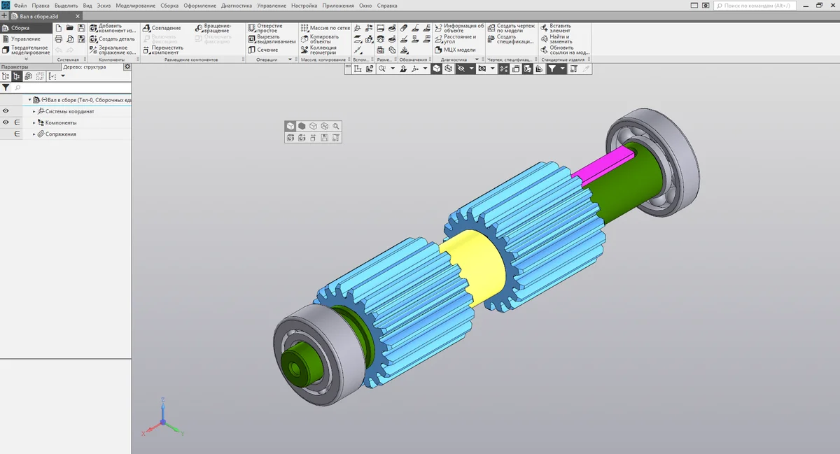 - встроенные библиотеки стандартных изделий — шайб, гаек, шпилек, зубчатых колес.