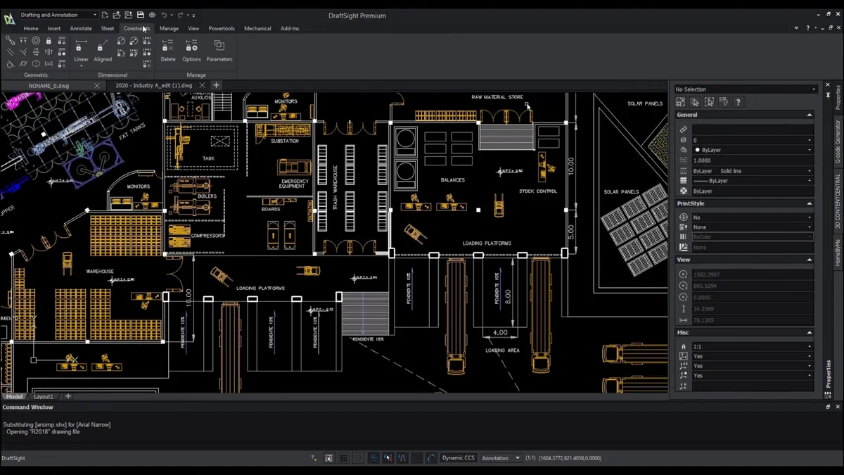 Подходит для инженеров, архитекторов и строителей, которым нужно надежное и недорогое решение для работы с 2D. DraftSight позволяет эффективно создавать, редактировать и просматривать схемы любой сложности, поддерживает форматы DWG и DXF. Есть инструменты для нанесения надписей и работы со слоями.
