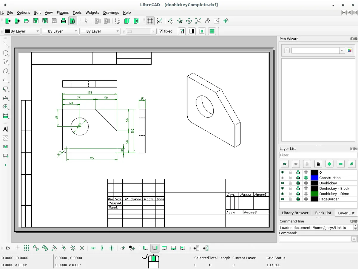 Программа для создания простых чертежей с размерами, распространяется бесплатно с открытым исходным кодом. Софт подходит для тех, кому не требуется взаимодействие с трехмерными объектами, но нужно создавать точную документацию. Его ключевая особенность — кроссплатформенный доступ к проекту.