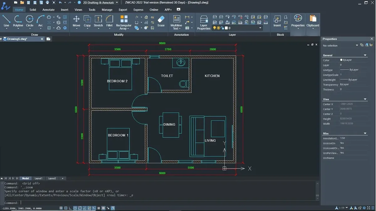 ZWCAD разработана как альтернатива AutoCAD с похожей логикой построения моделей. Имеет инструменты для двумерного черчения, трехмерного моделирования и параметрического проектирования. Стоимость бессрочной лицензии начинается от $899, у приложения есть 30-дневный испытательный период.