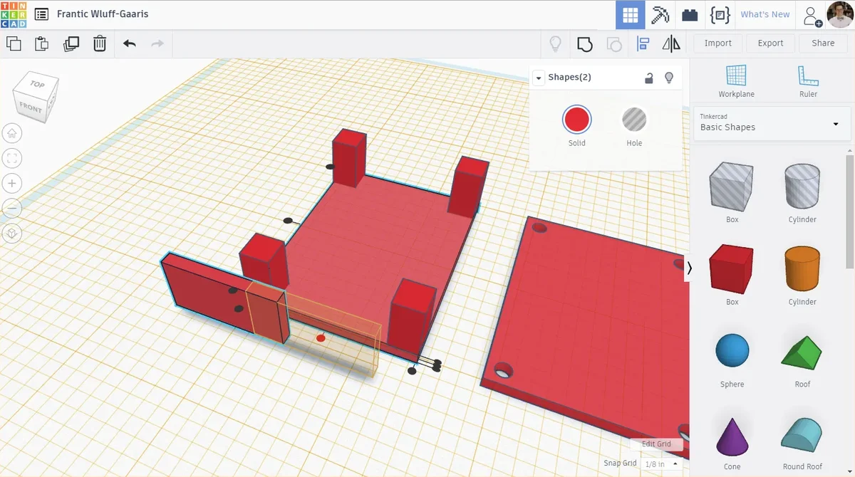 Облачное приложение от Autodesk. Здесь сложные объекты строятся из базовых фигур с помощью объединений и вычитаний. Например, если нужно сделать отверстие в кубе, то следует взять цилиндр и вырезать его из основного тела.