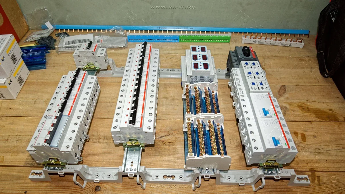 Монтаж модулей на DIN-рейки и сборка щита